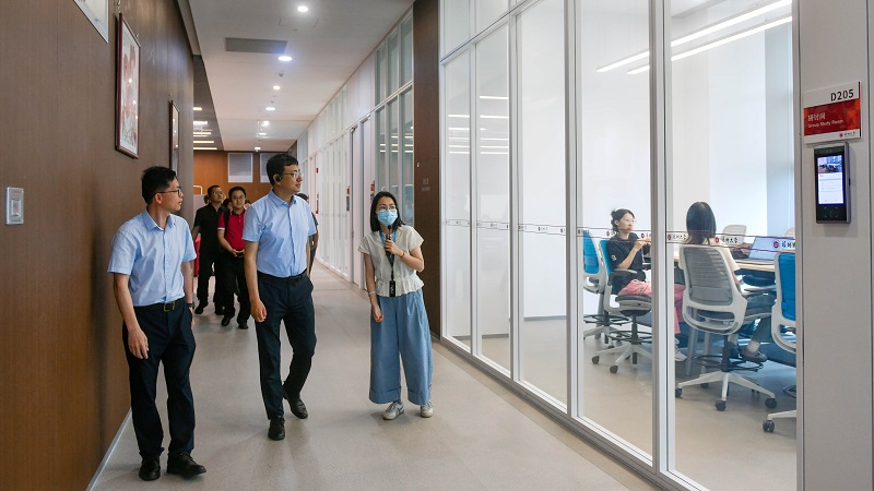 会后,邢占军一行参观了校区综合服务大厅、图书馆智能立体书库、实验动物中心及智慧教室,他表示校区在硬件设施建设、日常管理服务、安全应急保障等方面具有国内高校领先水平。