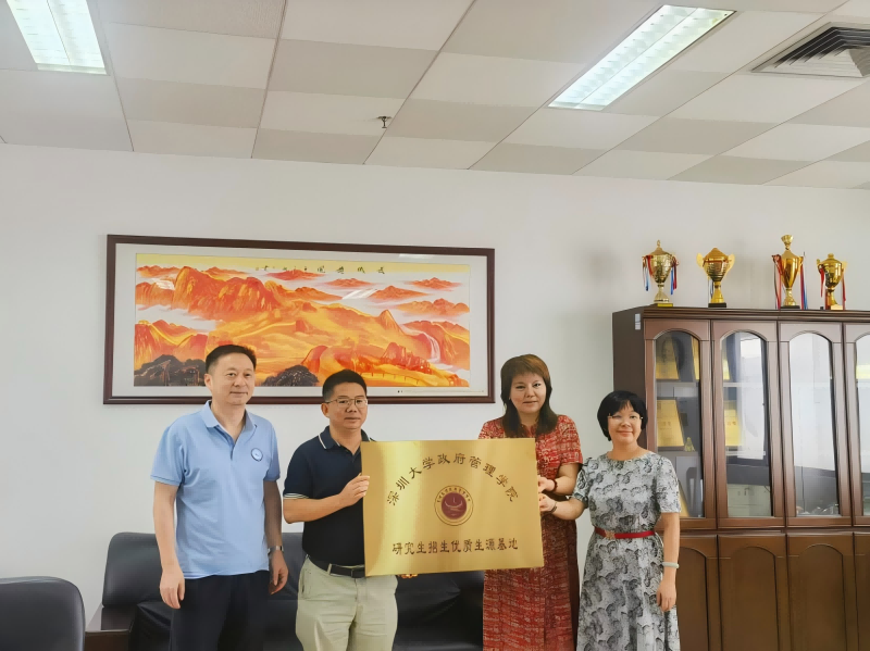 吴海燕副院长介绍了深圳大学政府管理学院的发展历程、学科优势与特色、师资力量及科研成果等情况。赵宇峰教授对华南师范大学政治与公共管理学院的培养模式和生源质量作出了高度评价,并感谢华南师范大学政治与公共管理学院与我院共同建设研究生优质生源基地。阮思余系主任对华南师范大学政治与公共管理学院的学科设置、人才培养模式进行了详细介绍。双方就公共管理学科的前沿趋势、培养模式创新及未来合作方向进行了交流探讨,期待通过资源共享、优势互补,共同推动公共管理教育发展。 座谈会后,吴海燕副院长、赵宇峰教授与华南师范大学政治与公共管理学院杨爱平院长、万晓宏副院长共同举行“深圳大学政府管理学院研究生招生优质生源基地”授牌仪式。这标志着双方将在研究生招生方面建立长期稳定的合作关系,促进双方之间的人才交流和资源共享。