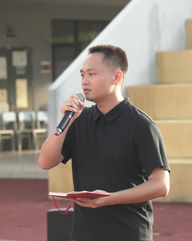 升旗完毕后,学院团委书记陆佳运老师发表主题讲话,他提到耕耘与收获之间的关系,“一分耕耘,一分收获”,他鼓励新生们各方面地去发展自我,提升自我,要敢于付出自己的努力,大胆地去耕耘自己的人生,终有一天会因现今的耕耘而获得满意的收获。