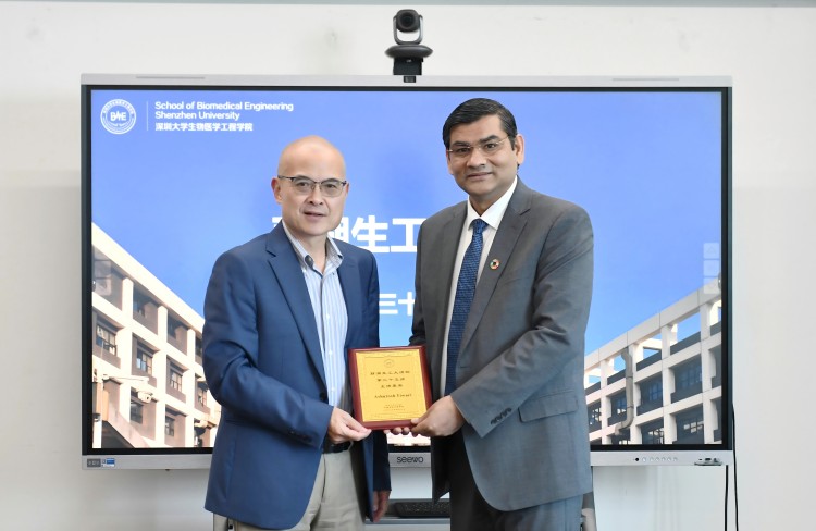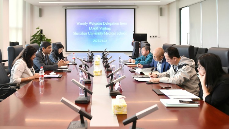 2025年4月3日上午,国际先进材料学会(International Association of Advanced Materials,简称IAAM)秘书长阿舒托什·提瓦里(Ashutosh Tiwari)教授携其夫人苏哒(Suda)女士、IAAM亚太区执行董事叶金琳女士一行三人来医学部访问交流。深圳大学医学部执行主任许兴智、副主任陈昕、医学部生物医学工程学院教授金永东及相关工作负责人出席交流座谈。