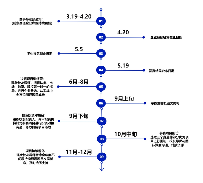 二、参赛对象 深圳大学在职教师、深圳大学全日制在校生(本硕博)、MBA、EDP学员、毕业10年内的校友(参赛团队成员人数不限制)。 三、赛程安排