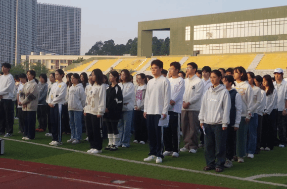 2025年12月9日,政府管理学院在丽湖校区至快体育场举行“一二·九运动”纪念日主题升旗仪式。深圳大学政府管理学院团委书记于世关老师、深圳大学政府管理学院团委副书记李依灵及政府管理学院学生共一百余人参加。