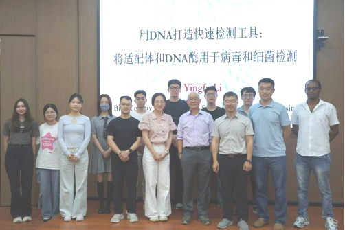 针对传统病原体检测方法耗时长、操作繁琐的痛点,李教授开展了关于功能核酸(FNAs)在快速检测领域应用的研究。报告首先系统剖析了DNA适配体、DNA酶及适配酶的结构特性与功能机制,结合抗凝血酶适配体、抗ATP适配体等经典案例及RNA连接DNAzyme晶体结构,深入阐释了功能核酸在分子识别与催化反应中的独特优势。在此基础上,重点分享了团队利用FNAs稳定性强、特异性高、可体外筛选与化学合成等特性,开发出的针对细菌、病毒等病原体蛋白及RNA标志物的广谱靶向检测技术。该技术可集成于比色、电化学等多样化传感平台,兼容床旁检测(POCT)需求,为临床、农场乃至家庭场景的快速诊断提供了创新方案,并以大肠杆菌检测为例,展示了将DNAzyme技术转化为类似石蕊试纸的水质检测工具的可行性。讲座最后,李教授总结了功能核酸在快速检测领域的优势与挑战,并与现场师生进行了热烈的交流讨论。